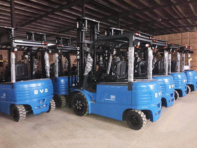 第一,比亞迪叉車為南昌基地提供近百臺(tái)平衡重式叉車;