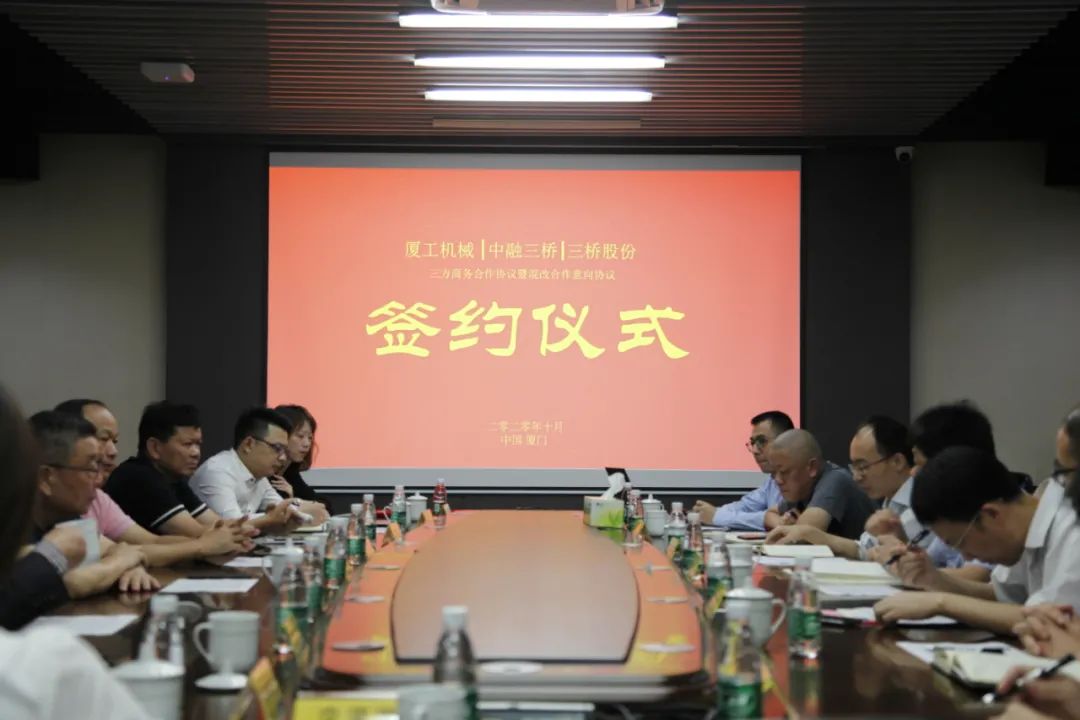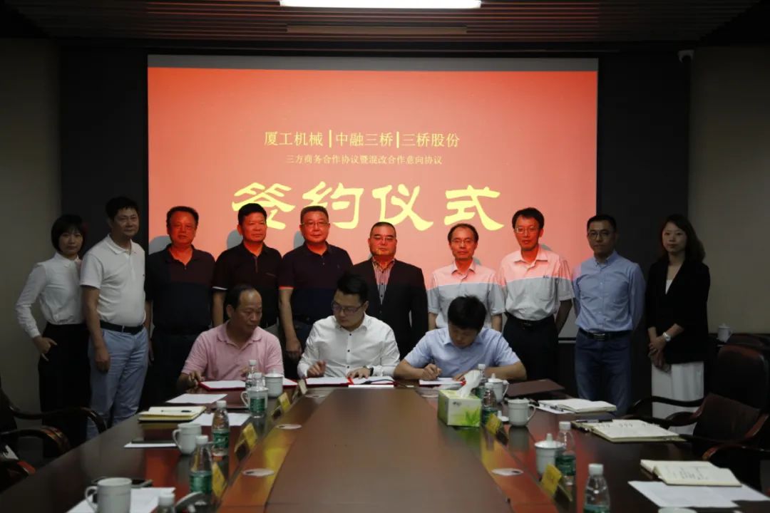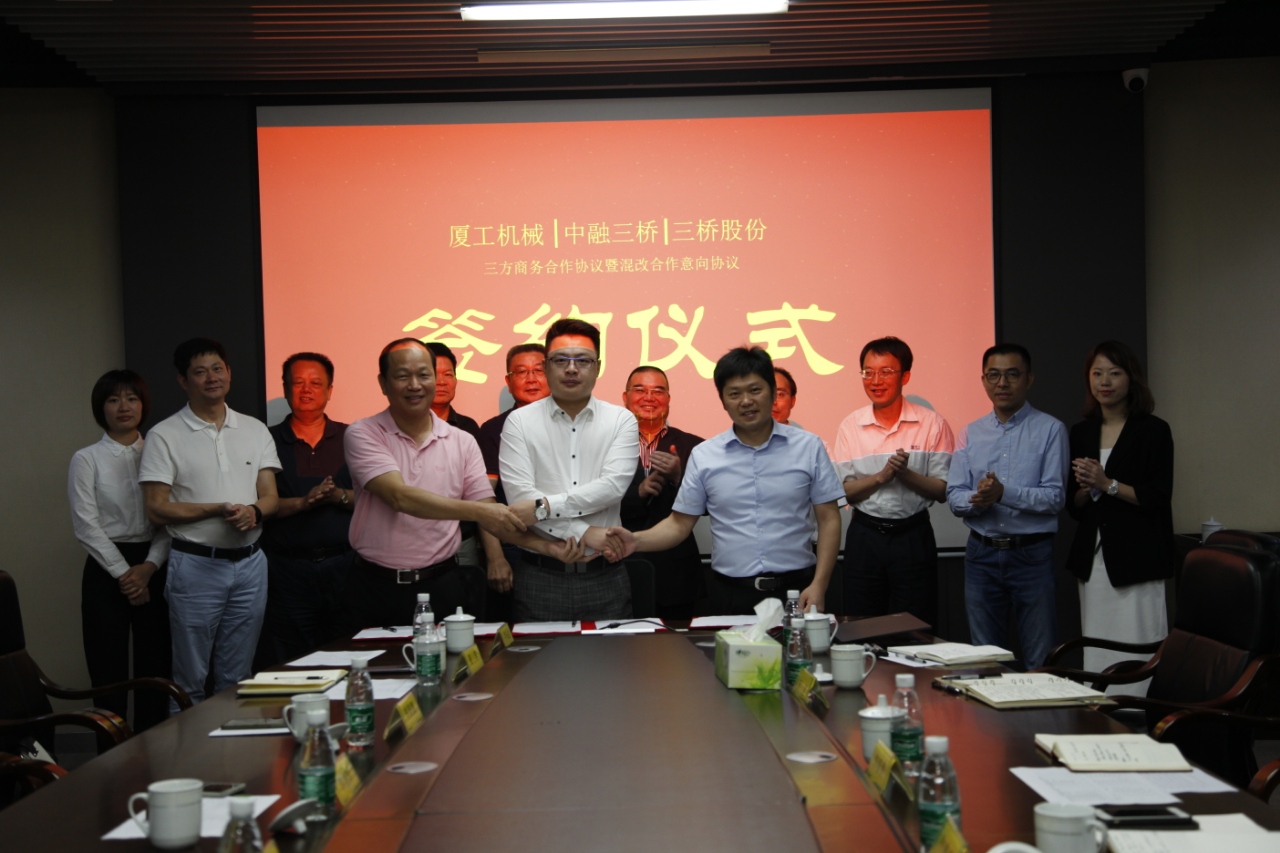 福建省機(jī)械工業(yè)聯(lián)合會會長許振明;廈工股份公司總裁林春明、副總裁兼財(cái)務(wù)總監(jiān)李喜勇、總工程師黃鶴艇;中融三橋公司蔡報(bào)軍、董事長姜洋、總經(jīng)理吳繼成出席簽約儀式。