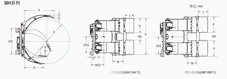 | Capacity 承載能力(kg) | Catalog Order NO 型號 | Mounting Class 安裝等級 | Roll Range 紙卷直徑 D-E(mm) | Long Arm Length 長臂長度 A(mm) | Short Arm Length 短臂長度 B(mm) | Long Arm Thickness 長臂厚度 C(mm) | Short Arm Type 短臂類型 | Contact Pad Size Long Arm 長臂夾板尺寸 K×L(mm) | Contact Pad Size Short Arm 短臂夾板尺寸 H×W(mm) | Vertical Ctr.of Gravity 垂直重心VCG | Weight 自重(kg) | Effective 失載距ET(mm) | Horizontal Center of Gravity 水平重心CGH(mm) |
